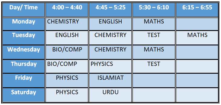 Time Table for Class XI & XII