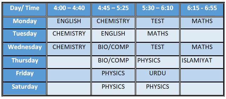 Time Table for Class X