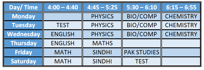 Time Table for Class IX